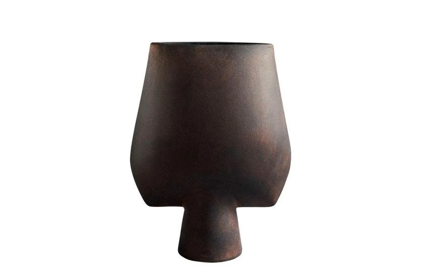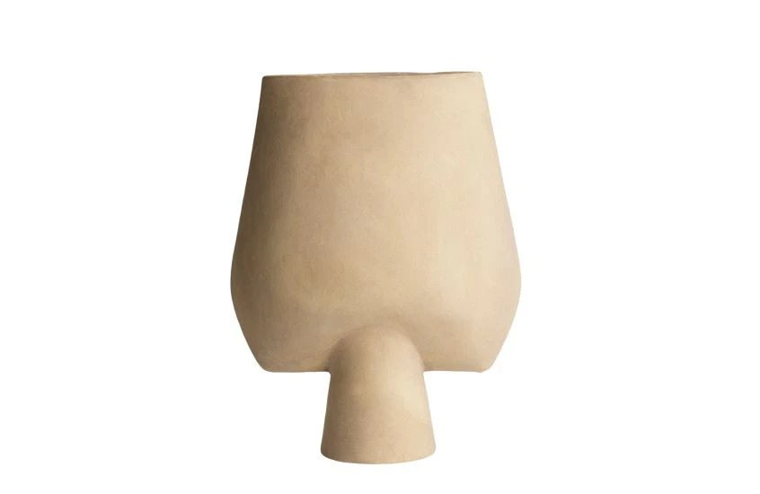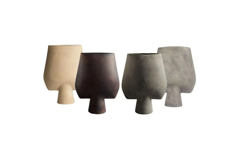 The squared Sphere Vase from 101 Copenhagen makes an impact with its raw and minimalist form. Each vase is sculpted, glazed and finished by hand to create one-of-a-kind detailing and is available in sand, coffee and dark grey hues. We recommend positioning this sculptural vase with a sprig of dried flowers.
