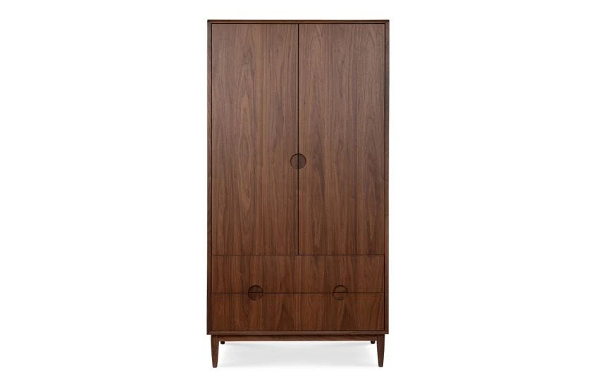 - Features plenty of hanging space behind the double doors and two soft-close drawers.