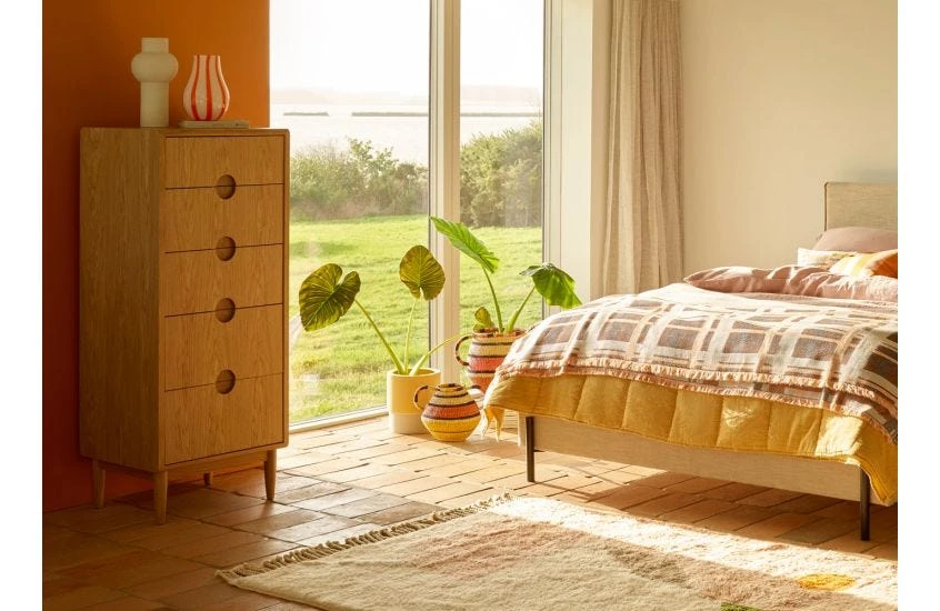 5 soft-close drawers for hidden storage.