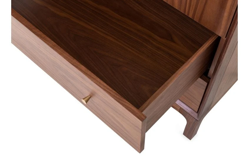 Accented with brushed-brass tapered knob handles.