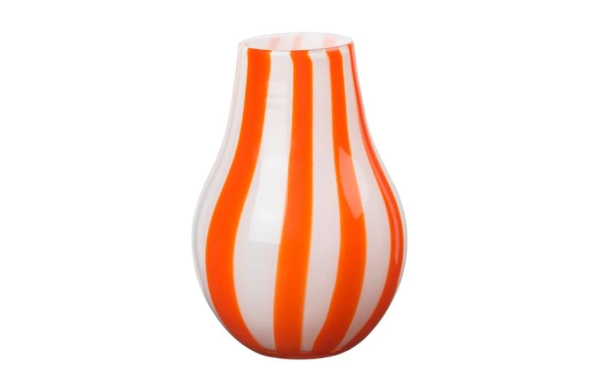 Striking orange swirls teamed with beautiful white glass create an objét d’art.