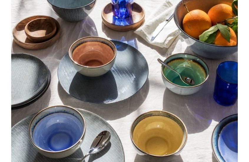 Nordic Sea is complemented perfectly by the colourful Dakara range by Nkuku.