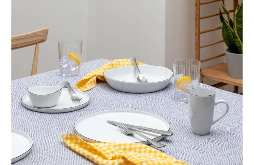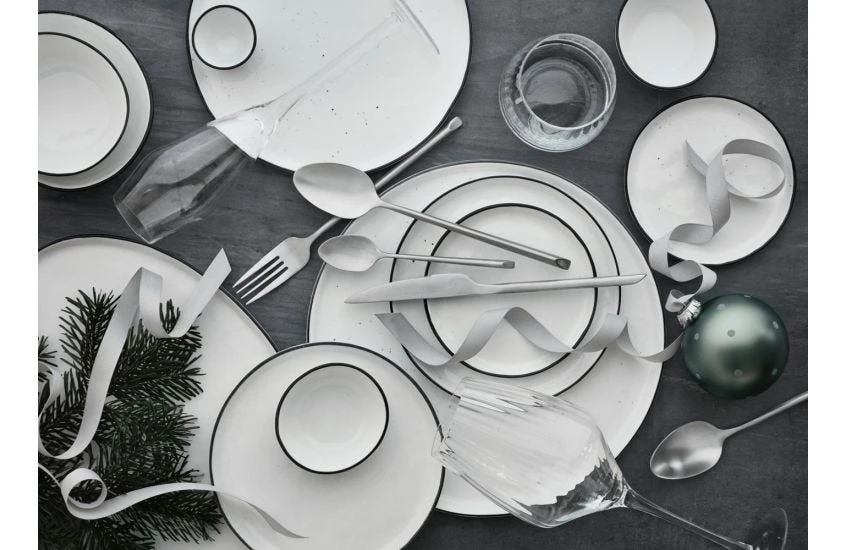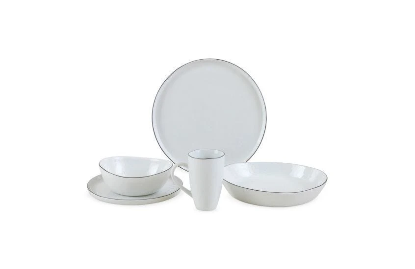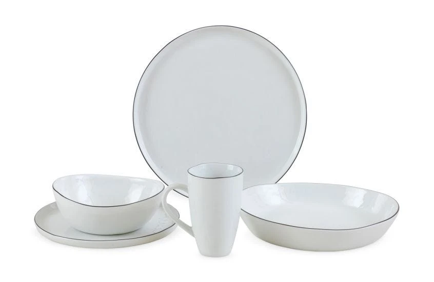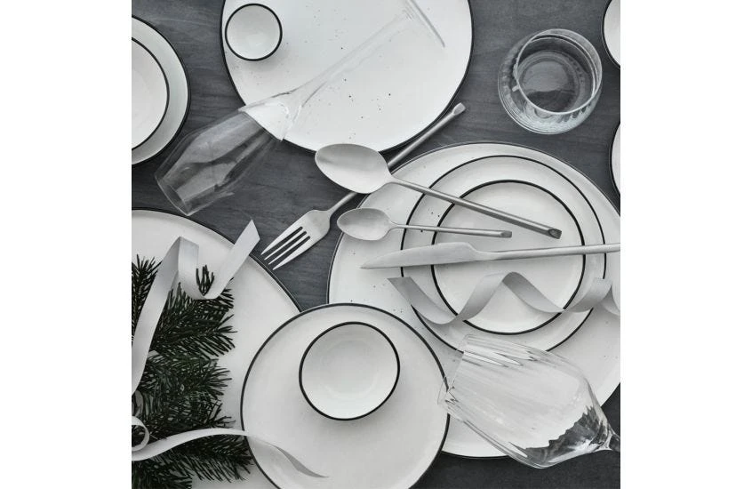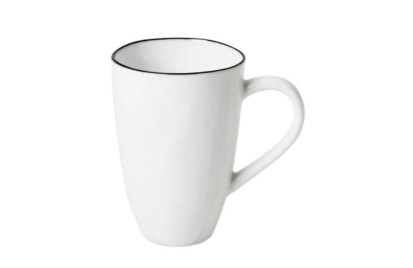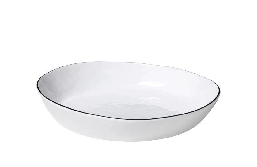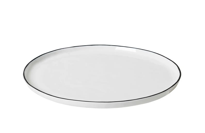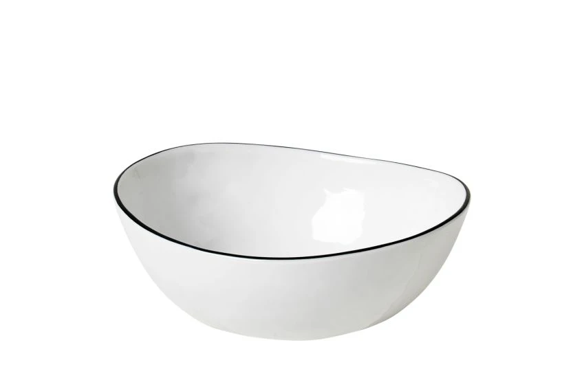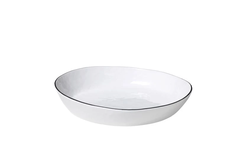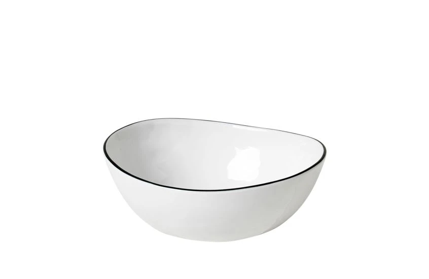 Made from porcelain with a slight organic shape and finished with hand-painted black rims