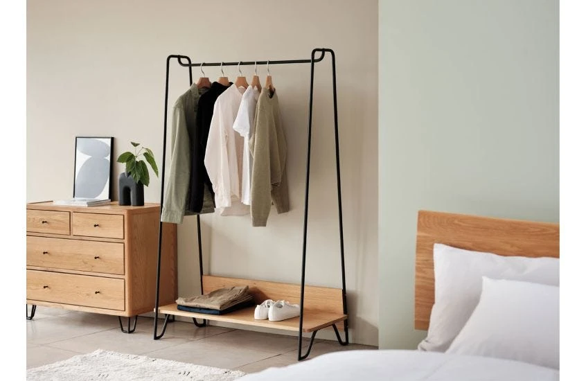 Rob Scarlett’s hugely popular Brunel range sets industrial style against Mid-century Scandinavian design to create pieces made for modern living. Drawing inspiration from original 1950s designs by the likes of Robin Day and Clive Latimer, this adaptive open hanging rail makes a feature of your wardrobe working just as well in the hallway as the bedroom.