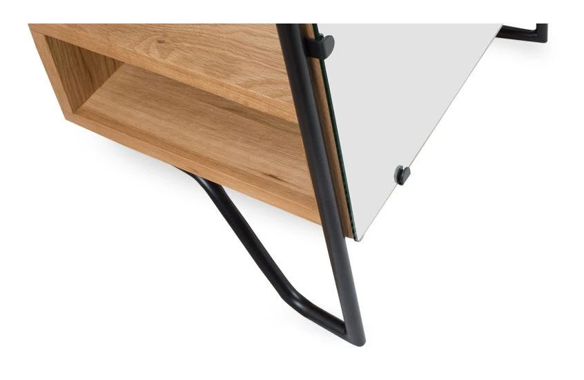 Made from solid American oak with hidden storage shelf and Industrial style powder coated steel frame.