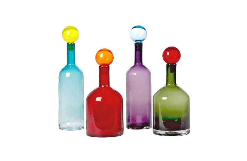 Made from full colour, mouth blown glass, Bubbles & Bottles is designed by Pols Potten and comes as a set of four different coloured vessels. Complete with brightly coloured mixed stoppers, these bottles are perfect for both storage or display purposes.