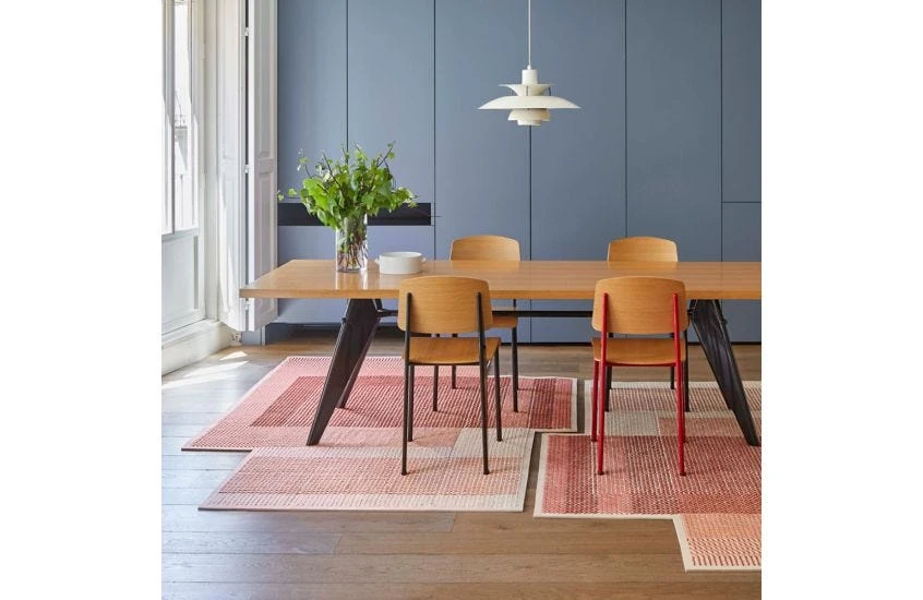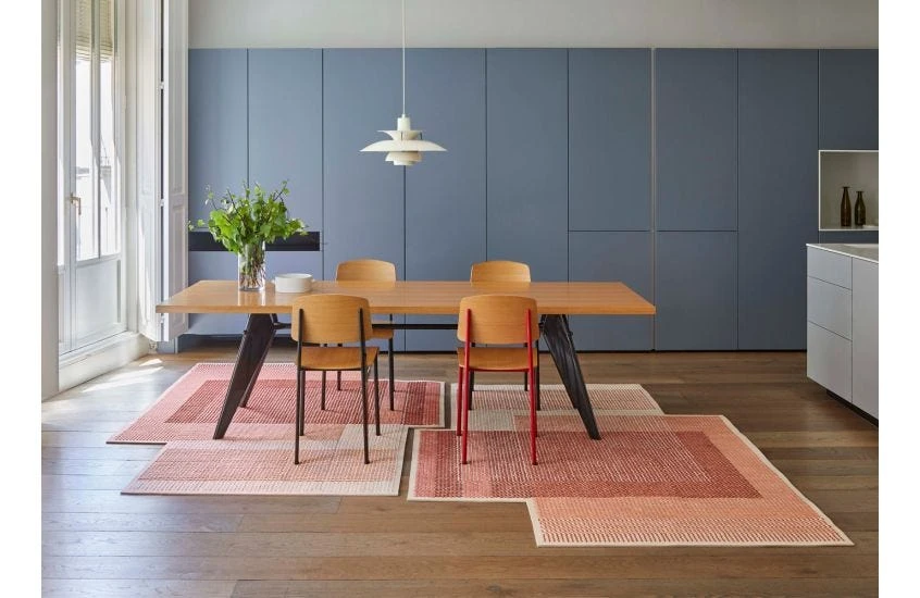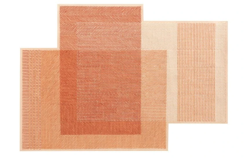 The creations of designer Charlotte Lancelot tell stories of nostalgia and freedom. Her trio of Canevas Geo Rugs are no exception, playing with colour, texture and geometry. Each rug in the series explores various stitching techniques, colour mixing and layering. Light and dark shades are woven over each other to create new tones and dimensions. Each rug looks as though three separate rectangular rugs have been placed on top of each other in various ways. Canevas Geo is a work of art for the floor.