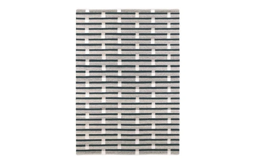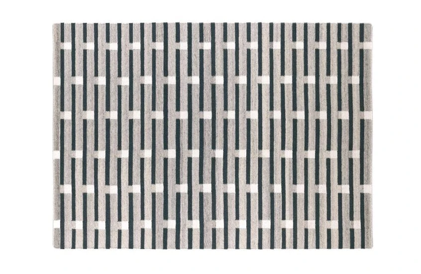 Designed in London by Eleanor Pritchard and handwoven in India, the Spindle Rug features a large-scale pattern of repeating thick and thin blocks centre-scored with a fine accent line. Flat-weave rugs have a flat finish and no pile. Flat-weave rugs are manually made using a vertical process which involves tightly knotting each thread. A small braid is made with each weave, creating the most characteristic feature of this traditional technique.