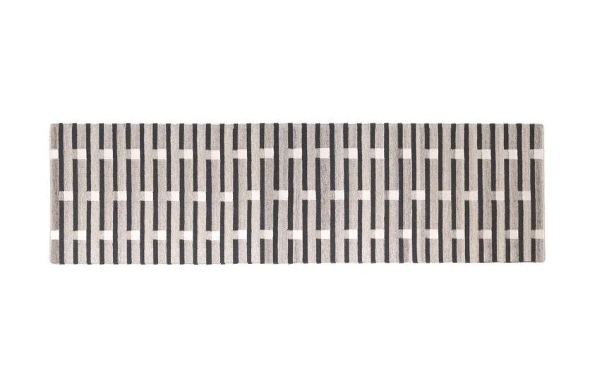 Designed in London by Eleanor Pritchard and handwoven in India, the Spindle Runner features a large-scale pattern of repeating thick and thin blocks centre-scored with a fine accent line. Flat-weave rugs have a flat finish and no pile. Flat-weave rugs are manually made using a vertical process which involves tightly knotting each thread. A small braid is made with each weave, creating the most characteristic feature of this traditional technique.