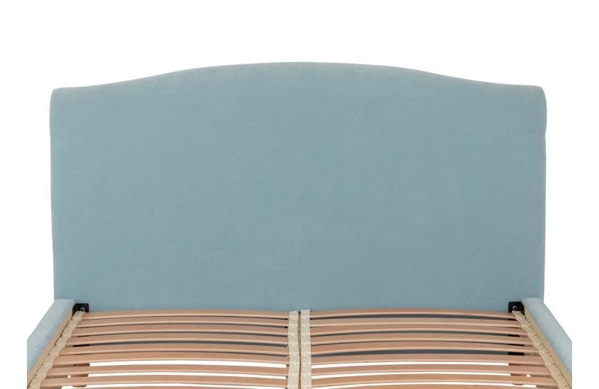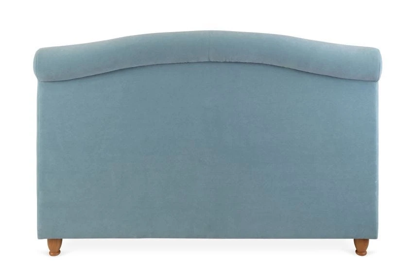 Inspired by the sofa, the super king bed mirrors the classic scroll-arm profile.