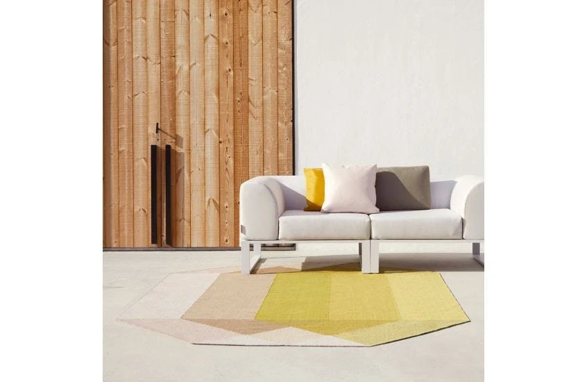 Charlotte Lancelot’s versatile pink-yellow Diamond Kilim Rug for GAN can be used both inside and outdoors. The unusually shaped rug takes the form of an octagon and is woven entirely from recycled PET fibres. Although these fibres are synthetic and made using plastic, they’re incredibly soft to touch and ideal for rugs. Through this sustainable production method, GAN is breathing new life into plastic waste.