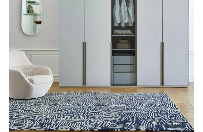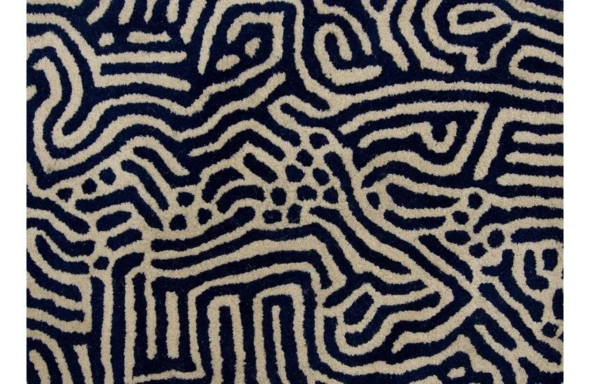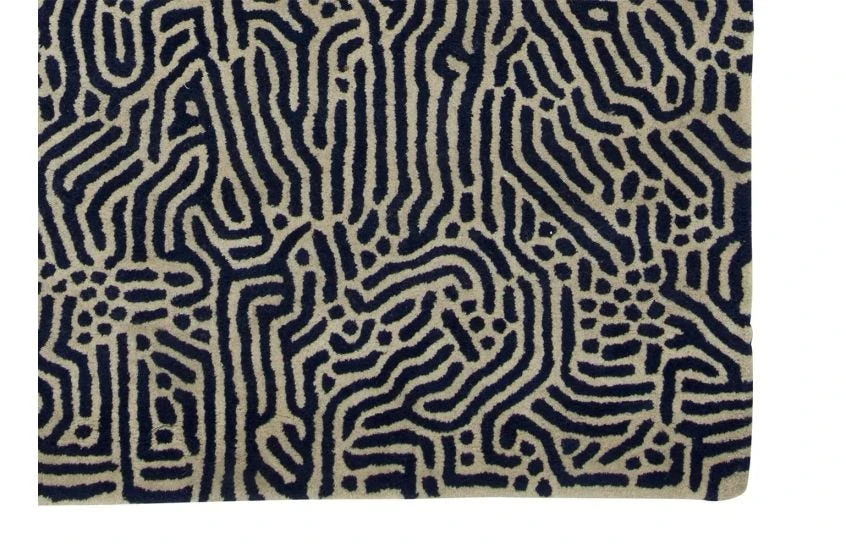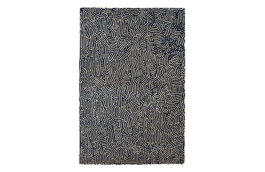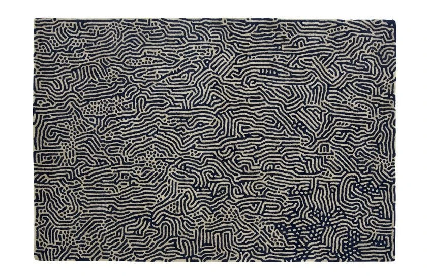 A contemporary rug with a plush weave featuring an unusual organic pattern against a neutral background.