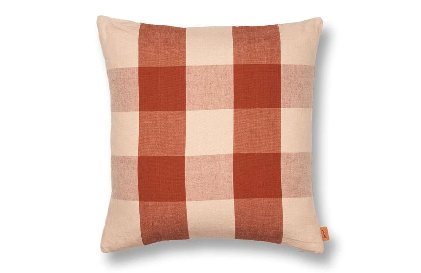 The rose-pink and rust-red Grand Cushion from ferm LIVING takes a traditional design, transforming it into a versatile modern textile. Made using a fine mix of natural linen and cotton, the yarn is dyed before being woven into the distinctive pink and red fabric. Mix and match with other designs in the collection, or similar colour combinations.