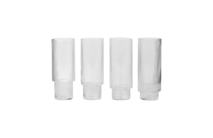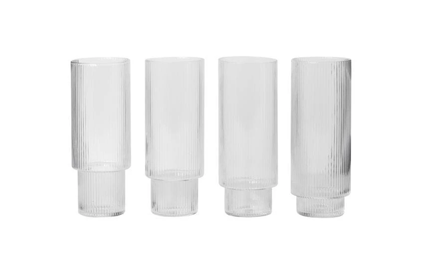 The Ripple Long Drink Glasses in Smoked Grey are the epitome of functional style. The vertically-ridged surface and narrow base provide a contemporary aesthetic reminiscent of Art Deco design, making this set stand out from the rest. The thick glass and heavy base make them a robust addition to any dining and social scenario.