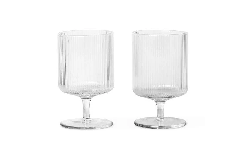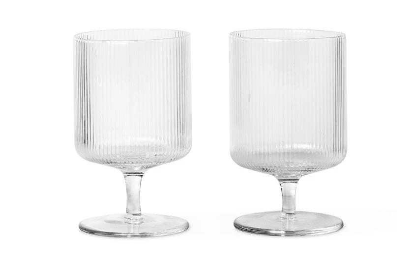 The Ripple Wine Glasses in Clear are eye-catchingly unique and carefully hand-crafted. The ridged surface of the bowl contrasts with the smooth stem to provide a contemporary aesthetic. Functionally robust, the bowl is an elongated sqaure atop the short, thick stem – reminiscent of Art Deco design. These glasses are a unique twist on typical wine glasses, creating a dynamic expression that will stand out in any drinking set. Perfect for all wines.