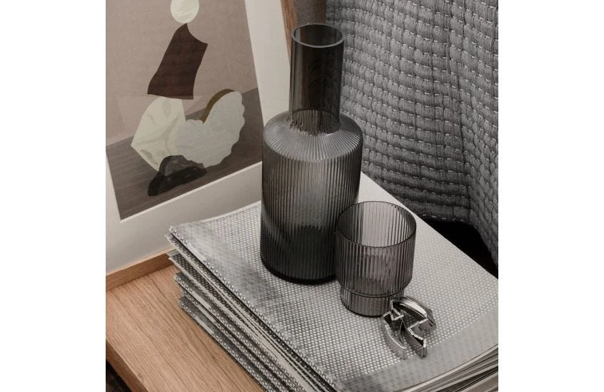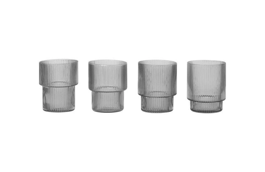The Ripple Tumbler Glasses in Smoked Grey are the epitome of functional style. The vertically-ridged surface and narrow base provide a contemporary aesthetic reminiscent of Art Deco design, making these glasses stand out from the rest. The thick glass and heavy base make them a robust addition to any dining scenario. Designed to be paired with the Ripple Carafe.