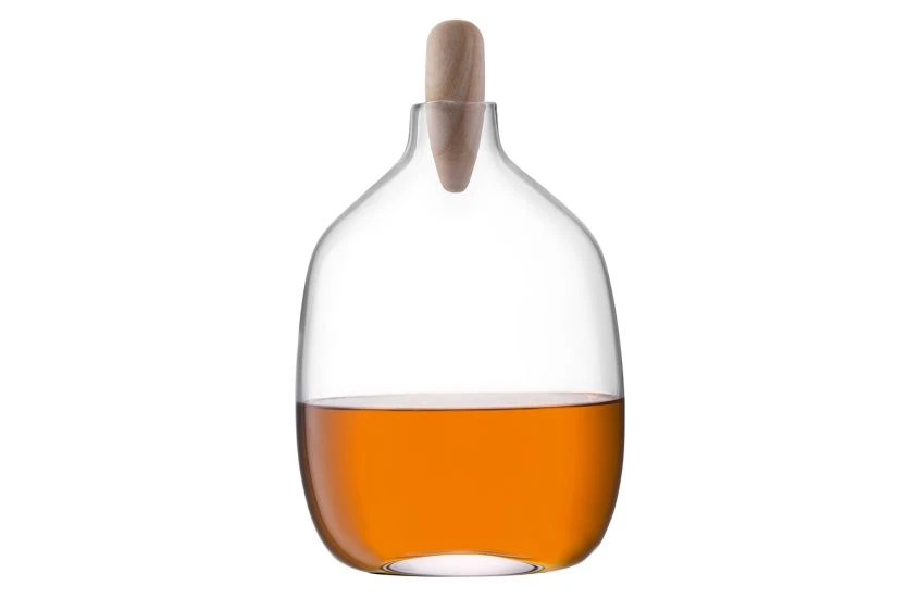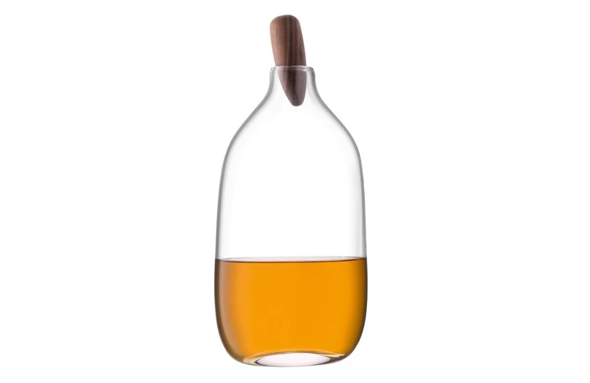 A beautiful, mouth-blown decanter with a modern, bottle-shaped profile.