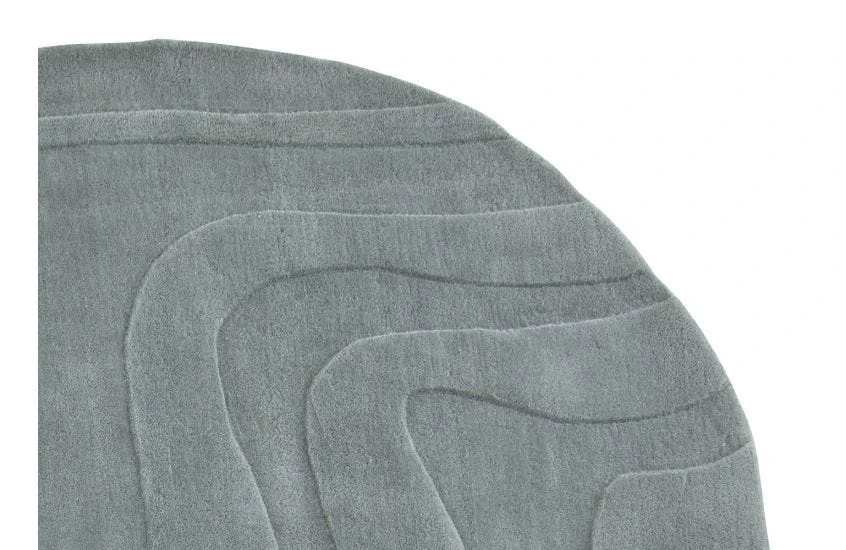 A new version of the Gavrinis rug in the shape of an irregular pebble, following the contours of Pierre Paulin’s sketches like topographical curves. The lines of the motif are achieved with subtle sculpting of the woollen tufts which are in two different heights, but the same colour. Rug in 100% wool, hand tufted and sculpted using tufts of 2 different heights (10-11 mm and 14-15 mm) to sketch out the motifs using a single colour.