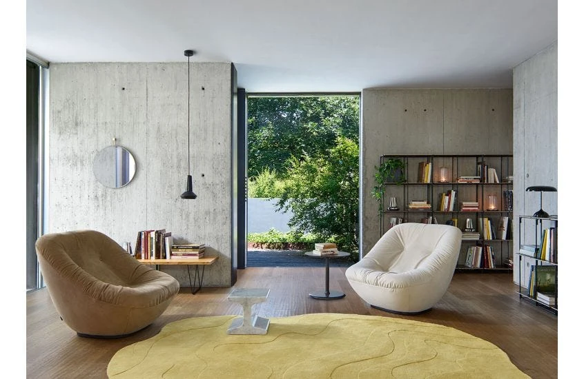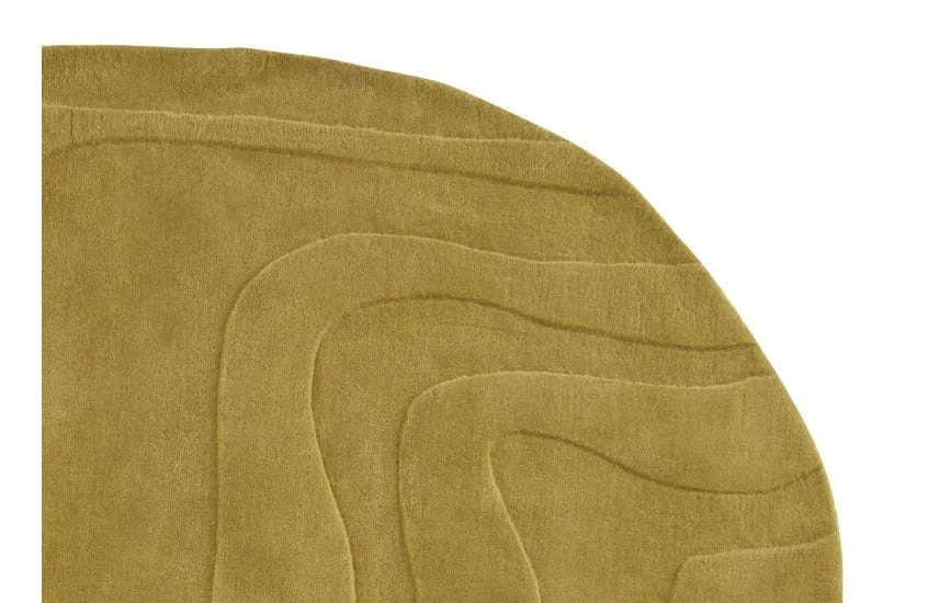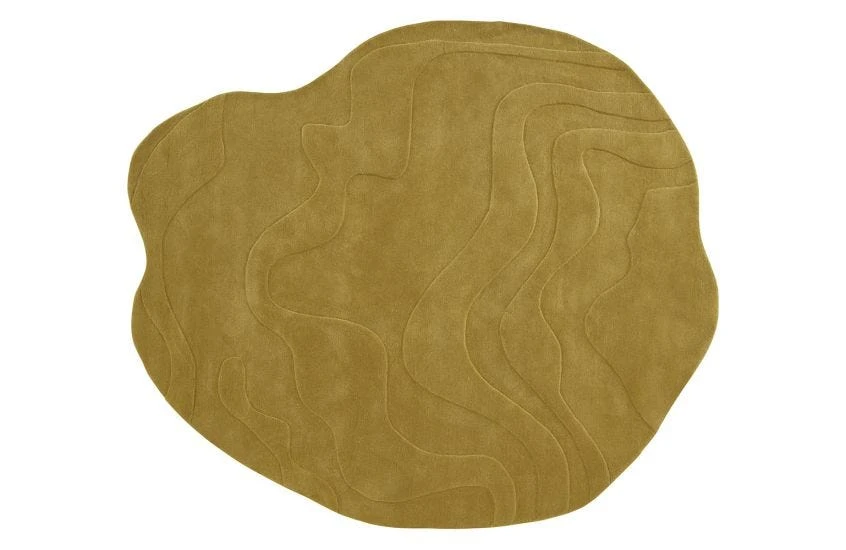 A new version of the Gavrinis rug in the shape of an irregular pebble, following the contours of Pierre Paulin’s sketches like topographical curves. The lines of the motif are achieved with subtle sculpting of the woollen tufts which are in two different heights, but the same colour. Rug in 100% wool, hand tufted and sculpted using tufts of 2 different heights (10-11 mm and 14-15 mm) to sketch out the motifs using a single colour.