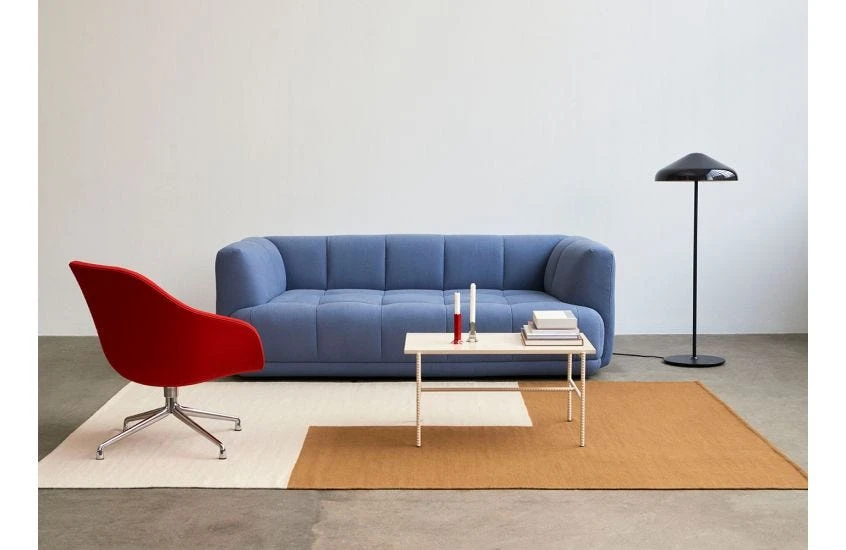 Inspired by his decorative woven wall art, Ethan Cook’s Flat Works is a series of handwoven kelim rugs designed for HAY. Featuring a geometric abstract design, the rugs translate the designer’s bold colour-blocked artwork into practical and decorative items.