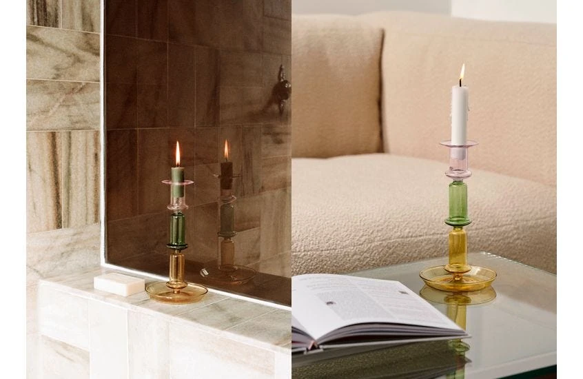 Coloured borosilicate glass creates an elegant and distinct way to display candles in HAY’s Flare Candleholder series. Available in a wide range of designs and colours – with contrast- or tonal-tinted edges, spiralled patterns and tricoloured rainbow design – they are ideal for using with HAY candles on a windowsill or table for creating ambience in the home. Both decorative and functional, they can be used on their own or mixed with different Flare designs or HAY candleholders.