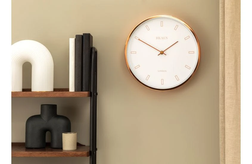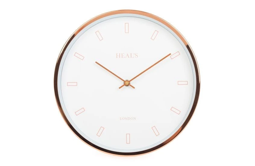 Inspired by Smith’s of London Clocks this contemporary wall clock, which is exclusive to Heal’s will look elegant in modern surroundings. Encased in a beautiful copper coloured case this round clock features copper hands and a metal foil printed dial which matches the warming hues of the clock’s case.