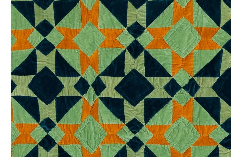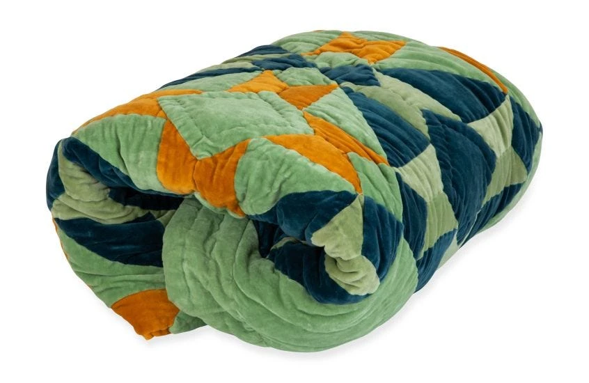 These stunning, 100% cotton velvet patchwork quilts are handmade from the softest cotton velvet, and feature beautiful tones of olive, navy and mustard.