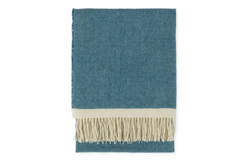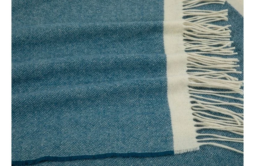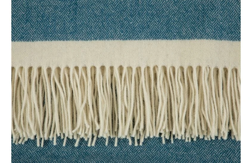 Basket weave with border and fringe finish; woven and finished in Yorkshire.