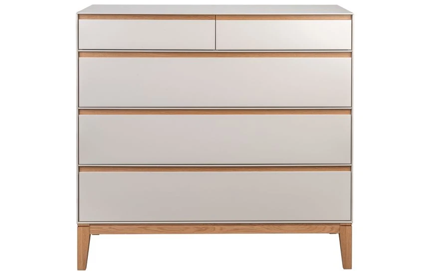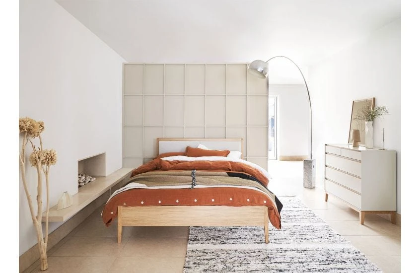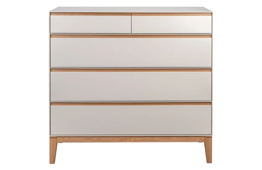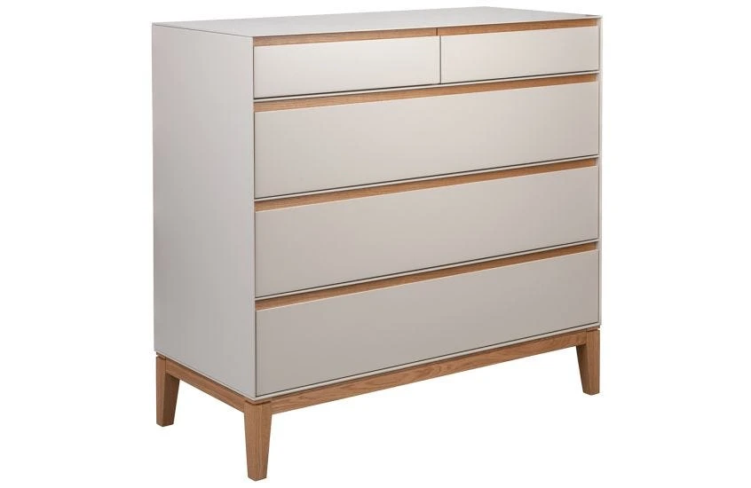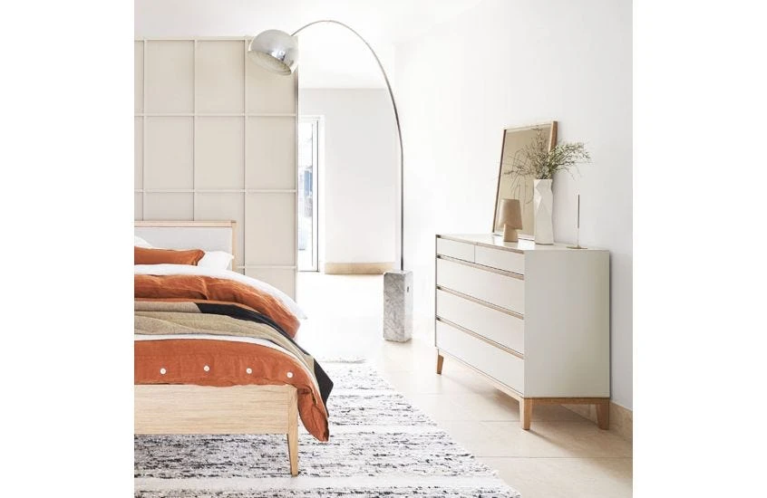 The pairing of deep walnut tones with a matte cashmere painted finish gives each piece a cool and contemporary timeless appeal
