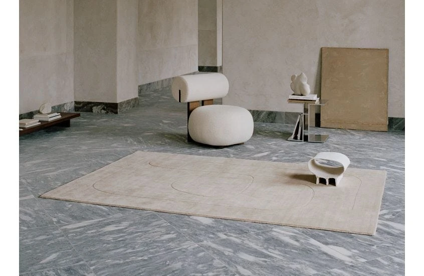 The Cursive Expanse rug features the Care & Fair label: a commitment to supporting its weavers and the Linie Design School in India.