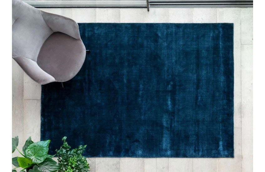 Hand-loomed using viscose, this navy Lucens Rug from Linie Design features a super soft pile with an opulent lustre surface. This modern rug elegantly catches the light providing a distinctive texture and different tones of deep blue that stand out within your décor. The rug’s Nordic maker, Linie Design, is committed to sustainable design and is part of the worldwide Care and Fair scheme to support its weavers. Similarly, every rug is crafted using environmentally friendly materials.