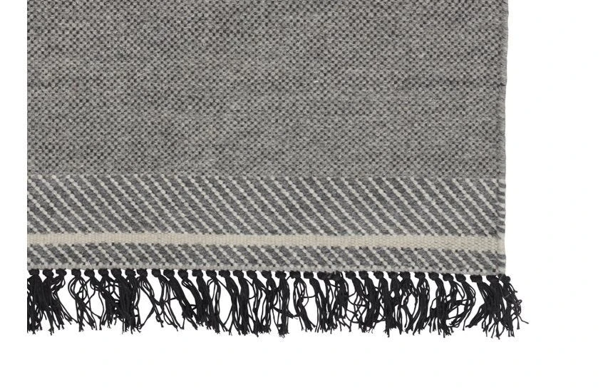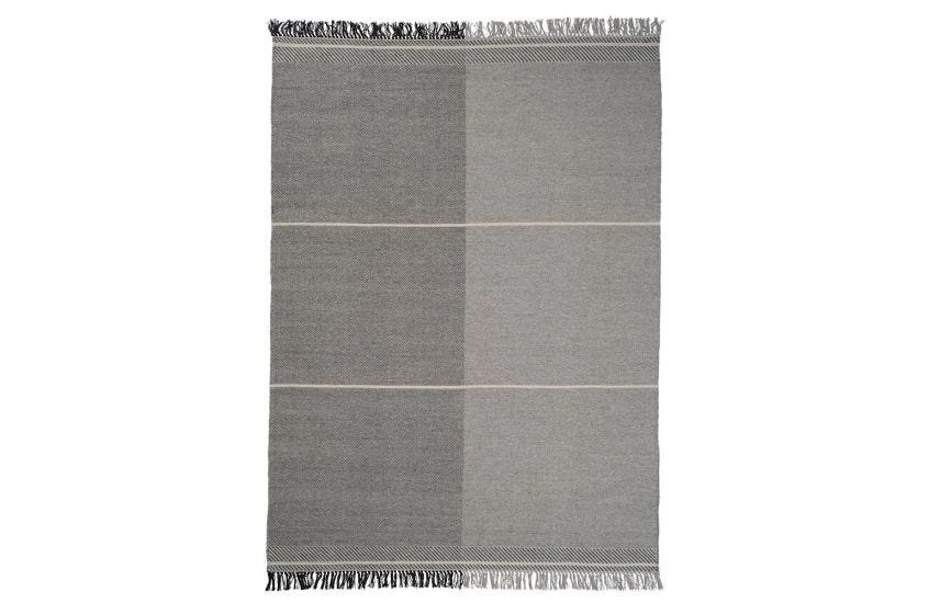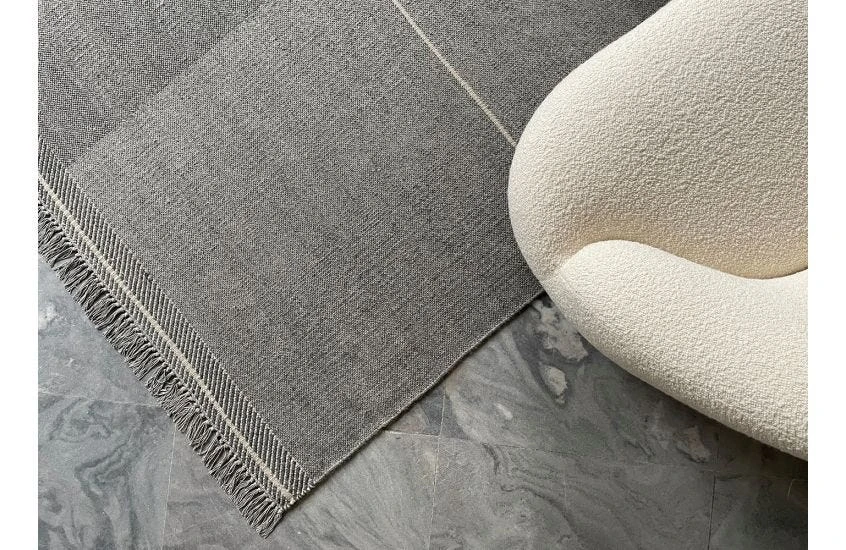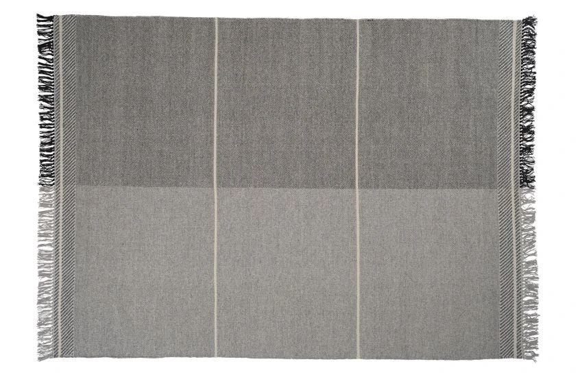 A unique textural hand-woven rug from Linie Design. Mindful Soul combines undyed natural grey wool with contrasting monochrome colour to create a well-balanced aesthetic that both intrigues the eye and offers a sense of harmony. Crafted from soft and durable wool, with warp and fringing in organic cotton, the rug’s colour becomes more dominant on the other side, creating a subtle yet striking reversed effect. Both materials are GOTS- and OEKO-TEX® -certified to ensure that eco-friendly and ethical processes were used throughout all the manufacturing processes. Hand-crafted by Linie Design’s artisan weavers and designed by Urd Moll Gundermann, Mindful Soul is part of the Apertus Collection that focuses on structure and sustainability to create stunning, responsibly produced rugs that feature the Care & Fair label.