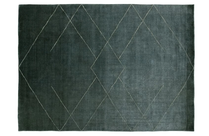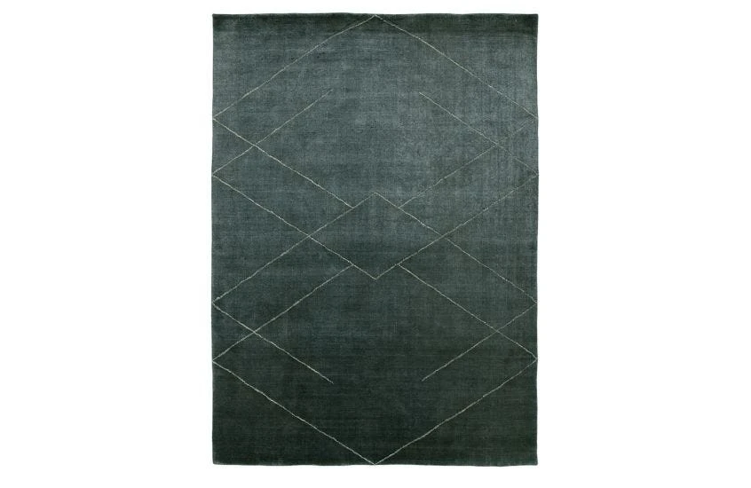 Featuring an elegant pattern of overlapping diamonds, the arty Tetsu rug combines the simplicity of straight lines with the rich softness of the pile, and comes in a dark and dramatic blue.