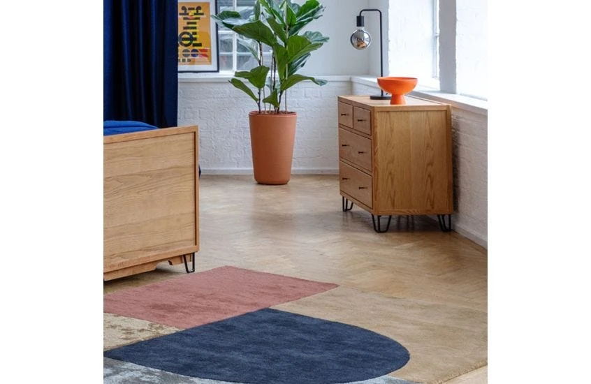 This stunning mustard Vilia Rug should take centre stage in any contemporary living space. Vilia features a mixture of cylindrical and square shapes that are reminiscent of Art Deco design. Hand-tufted in India using luxurious viscose and wool, this really is a rug to be admired. Plus, its Nordic maker, Linie Design, is committed to sustainable design and is part of the worldwide Care and Fair scheme to support its weavers.