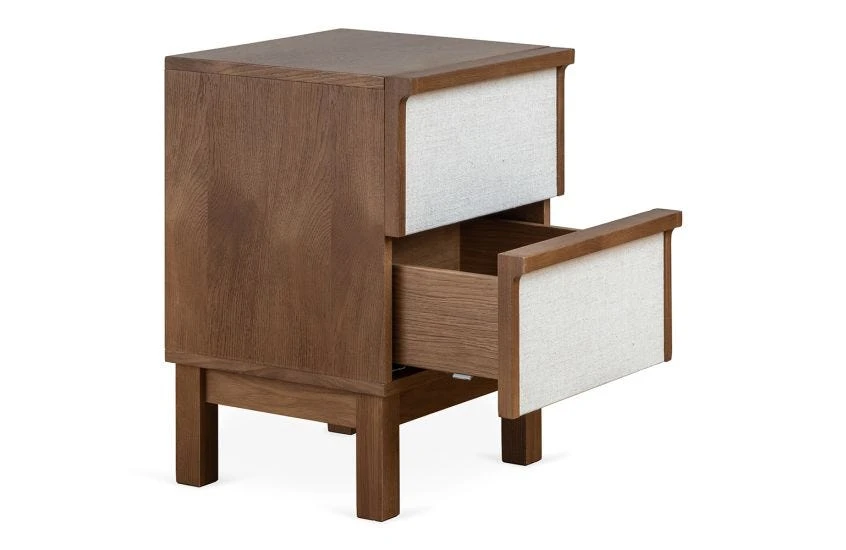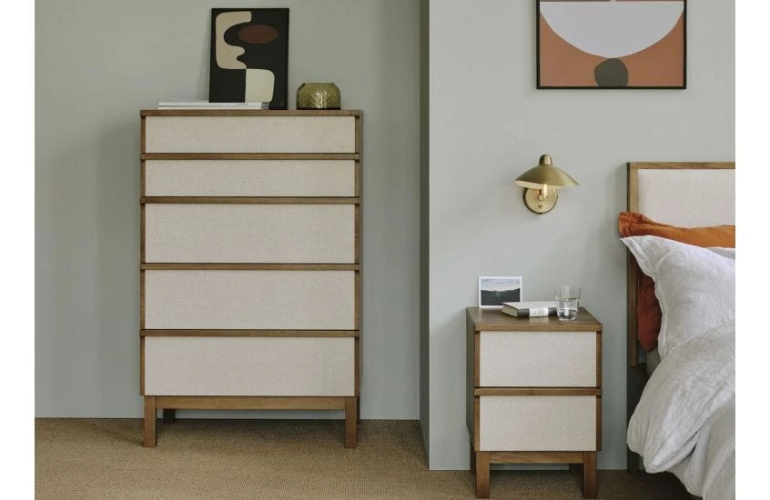 Exclusively designed for Heal’s by Norwegian talent Magnus Pettersen, the Marna Bedside Table is understated and timeless, and pairs beautifully with other pieces in the collection. Combining solid and veneer oak, the table features two distinctive drawers made from soft linen in an oat shade, adding a natural feel to any space. Storage that combines simplicity with style.