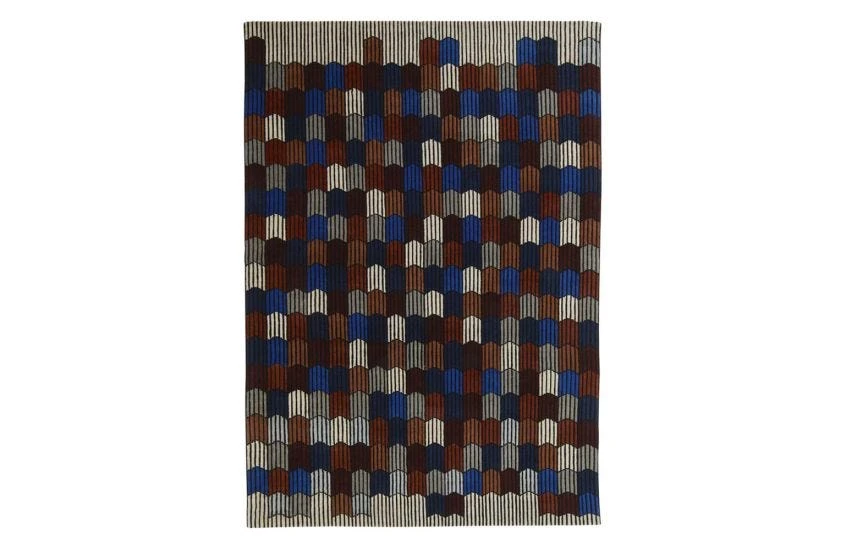 The Mémoire D’une Trame Rug calls on the traditional technique of hand knotting to achieve a meticulously detailed visual effect of a macrophotographic representation of a multicoloured weave. The delicacy of the motif and the subtlety of the shade associations leave this rug wide open to individual interpretation: are they an accumulation of little houses, or stylised directional arrows perhaps.