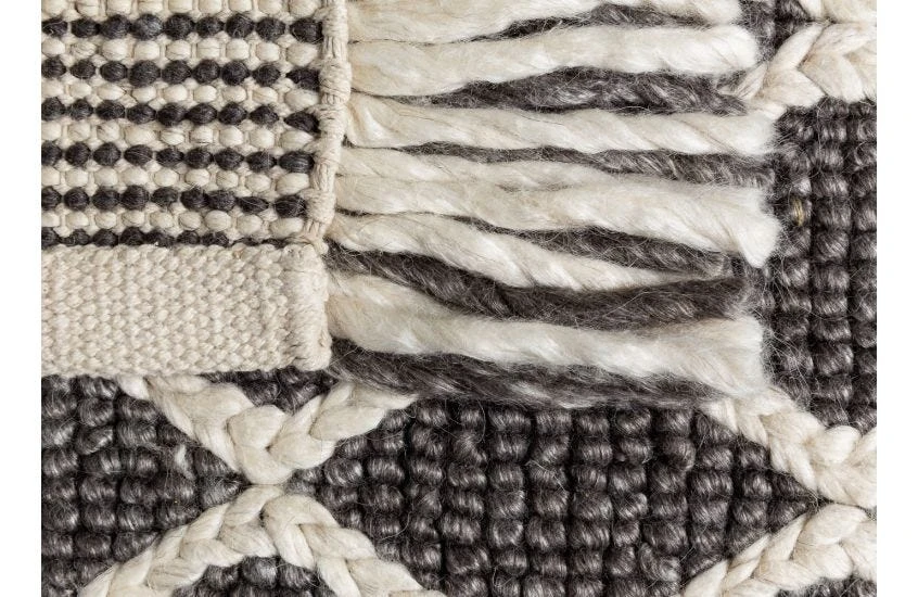 Ligne Pure rugs blend superior craftsmanship and distinctive design concepts. The Merge rug is 100% hand woven from a mixture of top quality wool and viscose in charcoal and white. Finished with a white trim, Merge is creative, playful and functional all at once. The natural palette and distinctive design make this rug an aesthetic centrepiece for all contemporary living spaces. Available in two sizes to suit a variety of rooms.