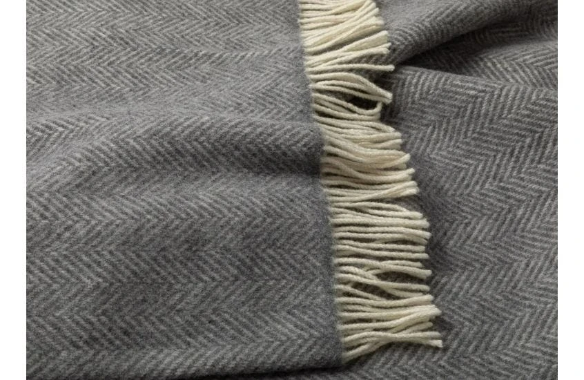 This herringbone throw is available in two different sizes and is perfect for layering with other textiles in the bedroom. Each one is expertly woven in Ireland using the finest cashmere and merino yarn. Each elegant throw is completed with ivory-hued tassels.
