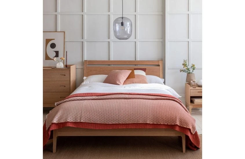 A mix of solid oak legs and oak veneer frame with white wash finish