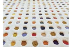 Evoking the ‘dot’ paintings of Damien Hirst, the Mota 2’s colourful grid of spots provides the perfect piece of contemporary art to adorn your floor. This hand tufted design also creates a raised texture that further accentuates the contrast of pure white background and colourful circles.