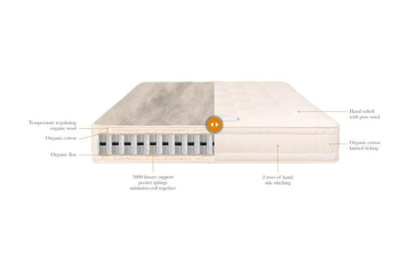 and beautifully tailored in organic cotton ticking by experts to create the precise level of firmness and keep fillings in place. Finished with solid nickel ventilators for added breathability.