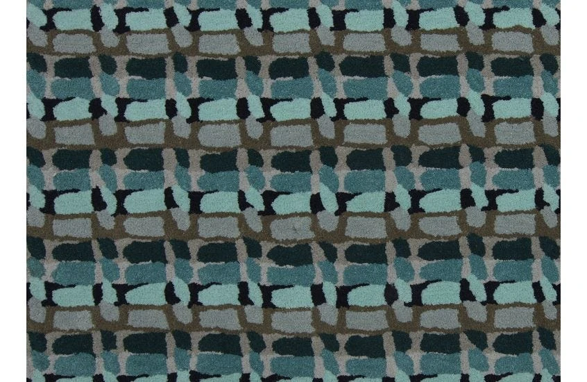 Hand-tufted from 100% wool and featuring a graphic motif, the Orientali rug from Lignet Roset makes for an eye-catching statement in any space, its aqua tones contrasted with darker shades. A soft and tactile feel underfoot makes it as cosy as it is chic.