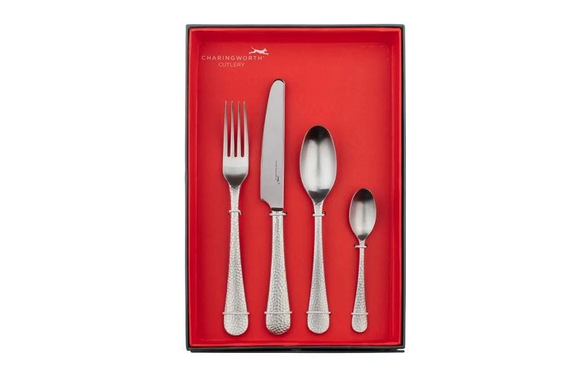 Features decorative dimpled handles with Charingworth logo embossed onto each piece.