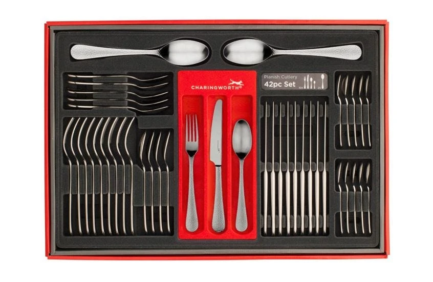 Features decorative dimpled handles with Charingworth logo embossed onto each piece.