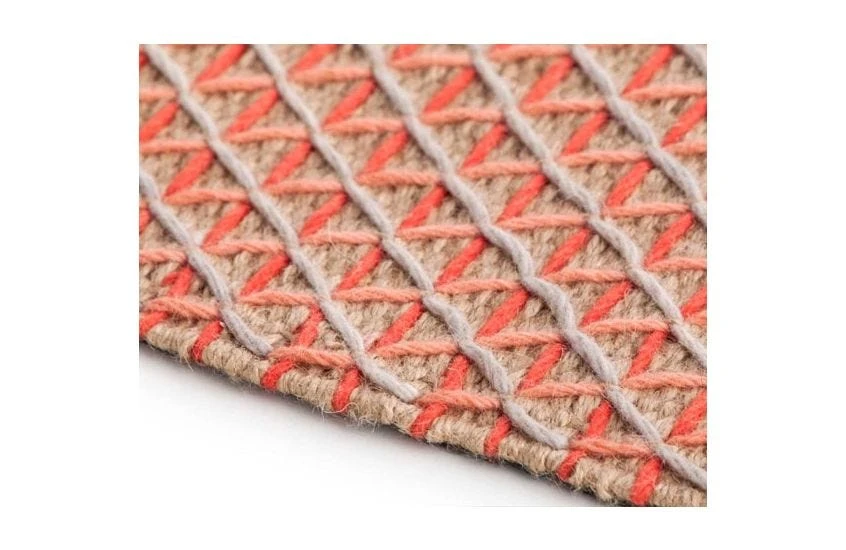 Taking inspiration from the traditional architecture of the Mediterranean, this rug features vertical and diagonal strands of colourful pink and grey wool that sit upon a rustic jute base and combine to create a stunning pattern that will fit your interior.
