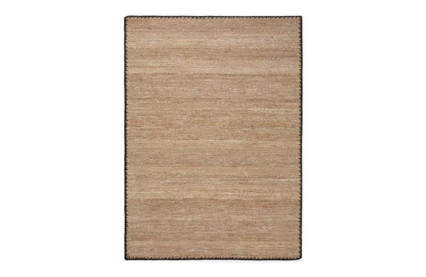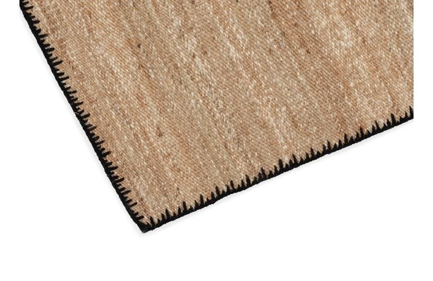 Woven from hand-spun natural jute with a cotton-bound edge design accent.