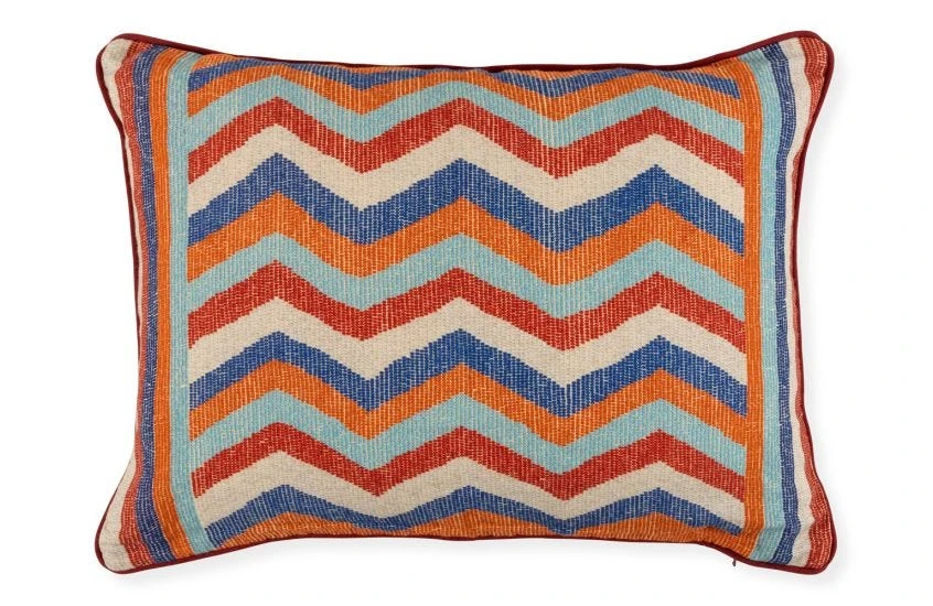 Celebrating the stunning beadwork of the native Kirdi people in West Africa, this Sapowaytati Rectangular Velvet Cushion is an aesthetic that reimagines the traditional. The zigzag patterned design was achieved by hours of detailed hand drawing, printed on 100% linen fabric that feels luxurious against the skin. Embodying all the colours of Africa, this rectangle cushion is a dashing addition to any living room.