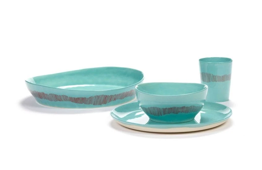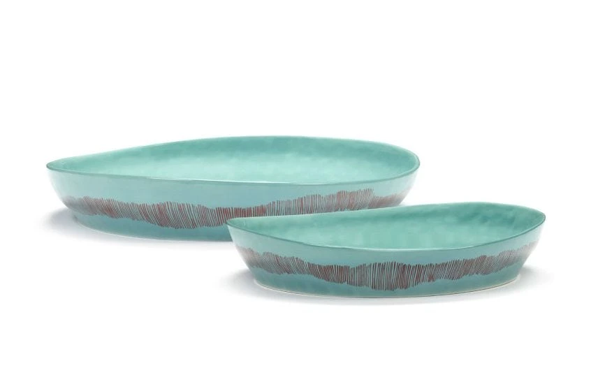 Designed by Italian artist Ivo Bisignano in collaboration with chef Yotam Ottolenghi for Serax, the small FEAST Swirl Serving Plate features an azure blue background and a red motif. Adorned with an artistic swirl, the plate’s design is inspired by joyful gatherings with friends and family. The small Swirl Serving Plate is crafted using stoneware and is microwave and dishwasher safe for ultimate functionality.