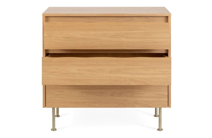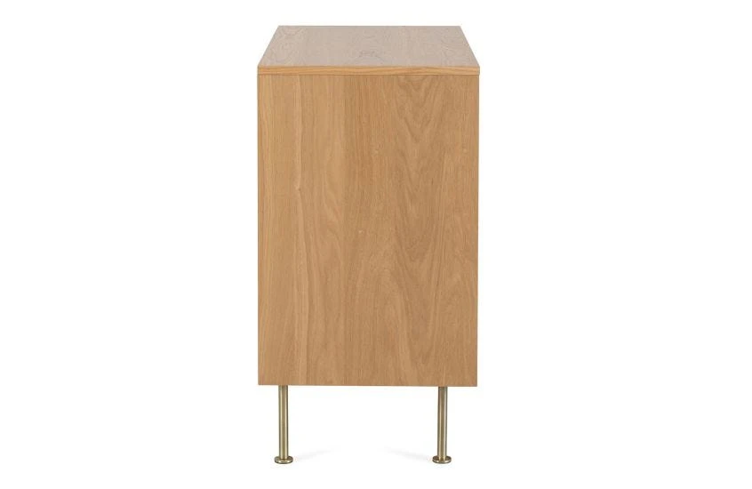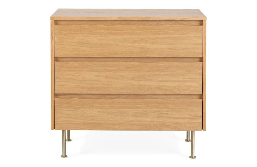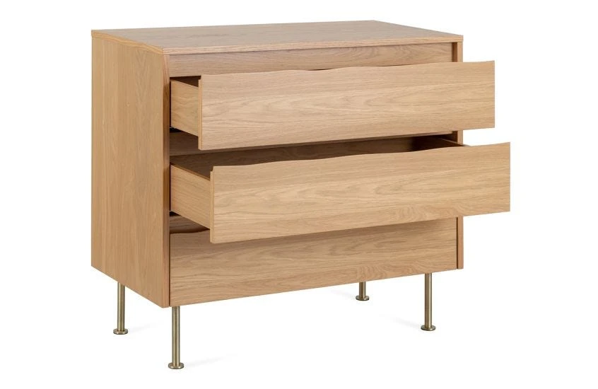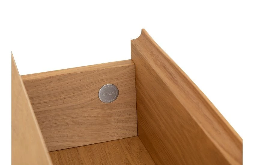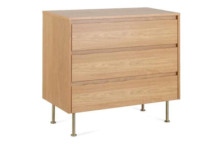 Designed by Danish studio Says Who exclusively for Heal’s, the Shiro 3 Drawer Chest is inspired by biophilia, bringing the outside in by reflecting the beauty of nature. The chest is made from solid and veneered oak with gentle waved edging and a natural grain that gives it an organic look. This is emphasised by the absence of any handles, showcasing the irregular profile of the three spacious drawers, whilst providing a clean and streamlined finish. Completing the lightweight design are legs accented in brushed brass for added style.