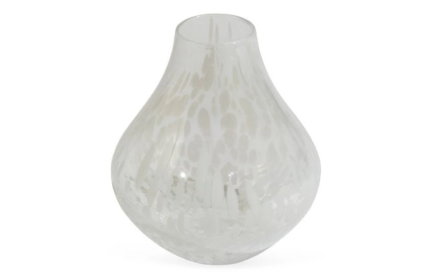 Handcrafted from mouth-blown glass and decorated with a white-splash effect, this vase is a playful addition to any space, whether used as a decorative piece or to display flowers. Because of its artisanal craftsmanship, each is completely unique, adding a personal touch to your table or mantlepiece.